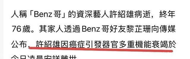 据港媒报道,28日凌晨,许绍雄因癌症引发器官多重机能衰竭,在家人的陪伴下安详离开,愿一路走好。