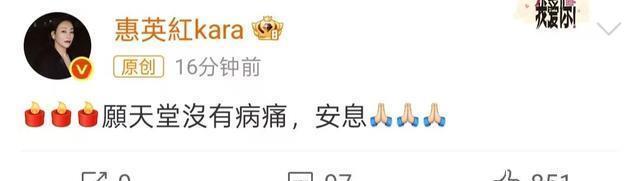 看到许绍雄离世的消息,惠英红发文悼念,“愿天堂没有病痛,安息”。