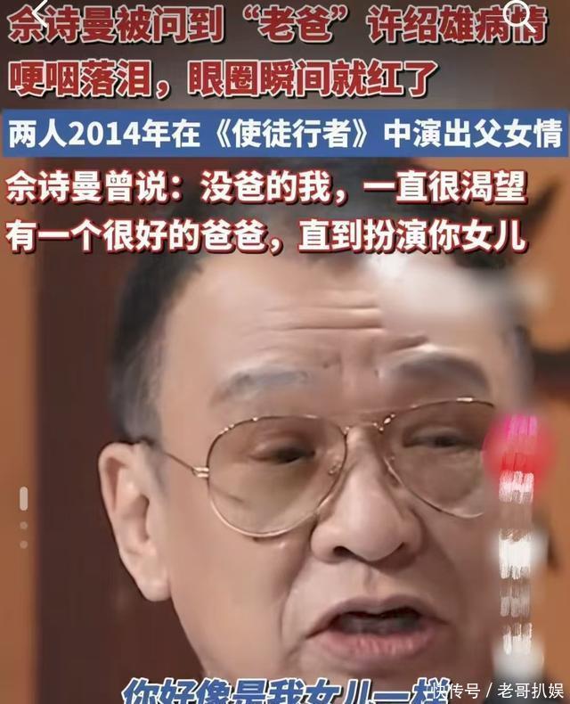 佘诗曼谈到许绍雄的病情时哽咽落泪,她原本打算当天飞北京,听到许绍雄生病住院的消息,她说有赶去看望,被问到许绍雄身体状况怎么样,佘诗曼哽咽落泪,说完“努力中”,她的泪水就掉下来。
