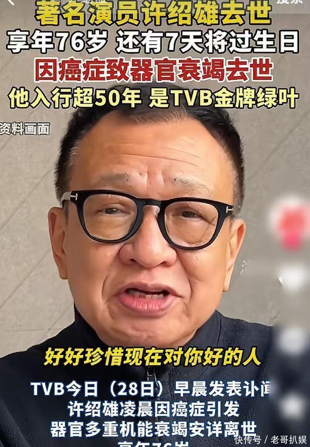 这个消息实在太突然了,许绍雄还有7天就将过生日,他拥有过“欢喜哥”等许多经典角色,是香港电视剧里的黄金配角。